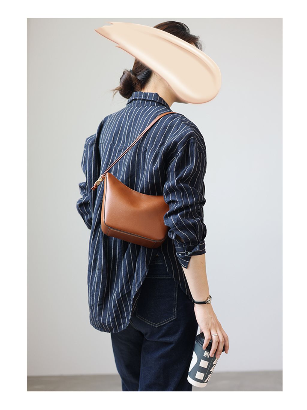 義大利頭層小細紋納帕皮 夏日這一隻足矣 軟船肩包